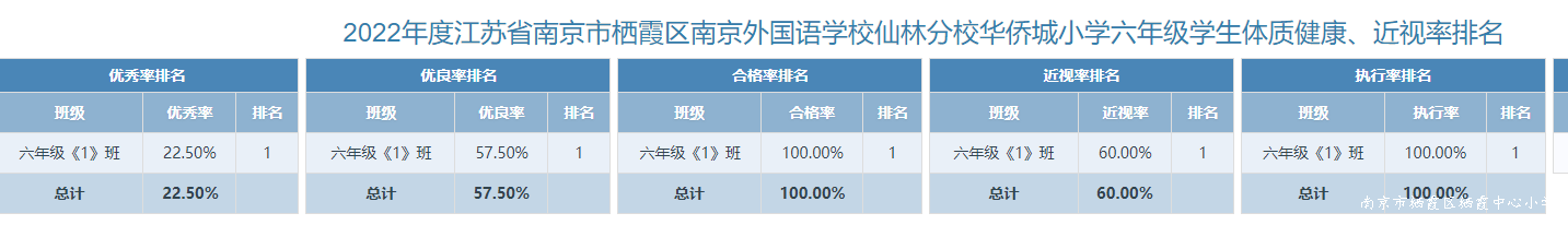 南京外国语学校仙林分校华侨城小学学生体质健康测试四率情况