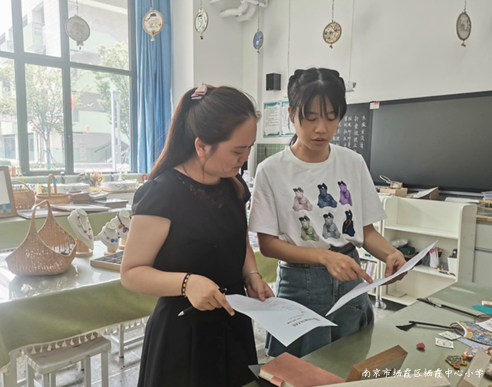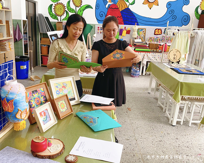 然后,校领导们针对“华衣”艺术坊作品展示进行了参观,并提出了一些建设性的意见。如主题课程“传统节日——端午”编竹船、手工香包等,如何将传统文化有效融合进“华衣”艺术坊美育课程,是今后需要探讨研究的核心。