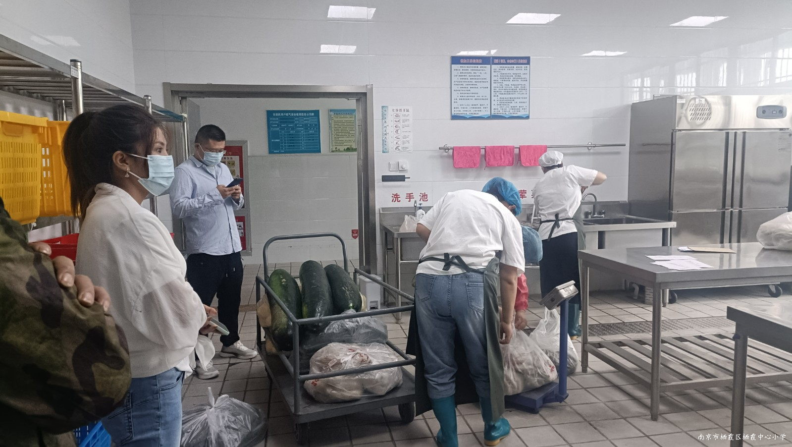 根据会前布置,当天早晨6:00,徐老师就准时出现在校门口,等待着家长们的到来。6:10分,徐老师引导各位家长来到了食堂后场,正在卸货的食材配送单位人员为家长们介绍了食材的来源、生产日期等信息;随后,大家观看了食堂工作人员接收、验收食材的系列过程。早餐后,各位家长对照“膳食督查”评价表检查食堂食品加工过程并认真对照检查内容逐一评价。
