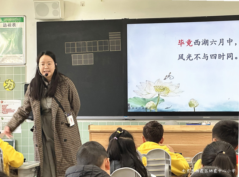 第一节课由饶红梅老师执教《晓出净慈寺送林子方》,饶老师课堂教学紧紧围绕教学目标,设计精致。整节课以读为主,一读通诗句,二读出诗意,三读出画面,最后读出感情。本节课中,通过层层递进的朗读,训练学生读中感悟,落实了本课目标。