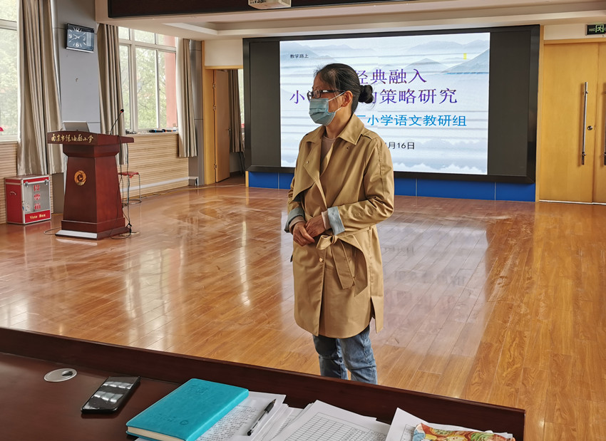 接下来,教研组长戴学娟老师向大家传达了本学期的语文教研活动计划,明确这一学期的目标、任务和具体措施等,让每位老师对这学期的工作目标和职责做到心中有数。区特色教师徐香老师对本学期的校本主题教研做了阐释和教研分工。我们将继续以蒙学经典诵读为抓手,打造富有我校特色的语文教研。