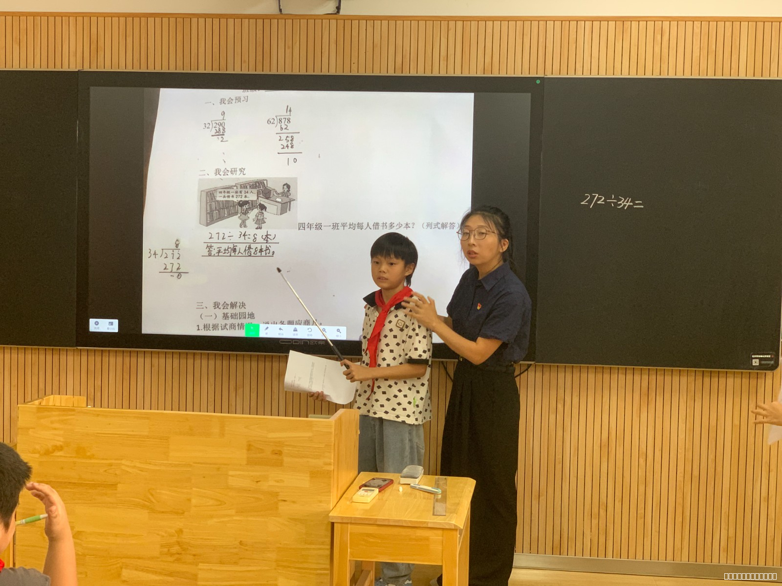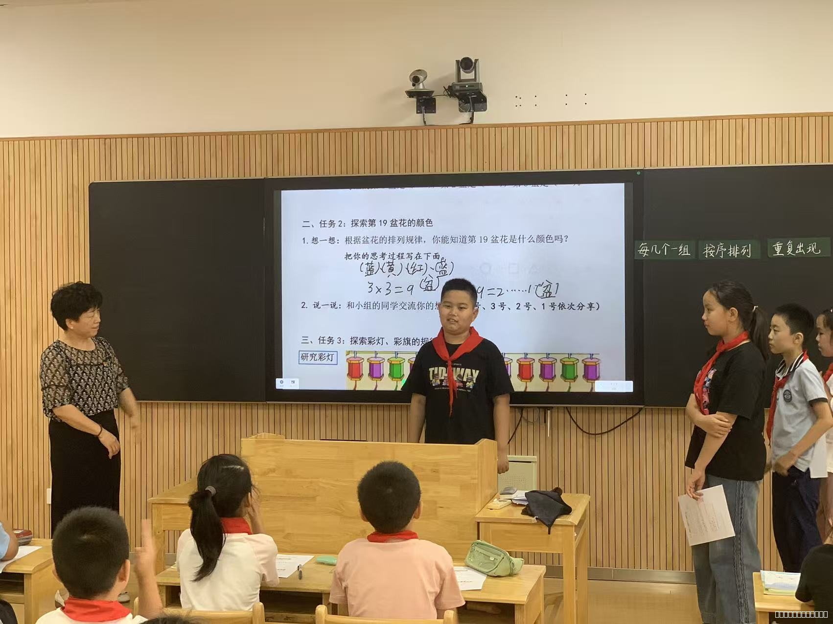 党员教师王佳佳执教《四舍调商》,以知识迁移为切入点,在新授与练习环节融入分层设计:通过“同质小组巩固基础+异质小组拓展思维”的组合模式,兼顾不同层次学生学习需求,让每个孩子都能跟上课堂节奏。党总支书记王海燕执教《简单的周期》,设计“独立完成—异质探索—同质交流”的递进式教学环节,既引导学生扎实掌握数学知识,又巧妙链接生活场景,让抽象概念具象化。两节课均创新设置“作业超市”,让学生自主选择匹配自身水平的作业,真正实现“因材施教”。