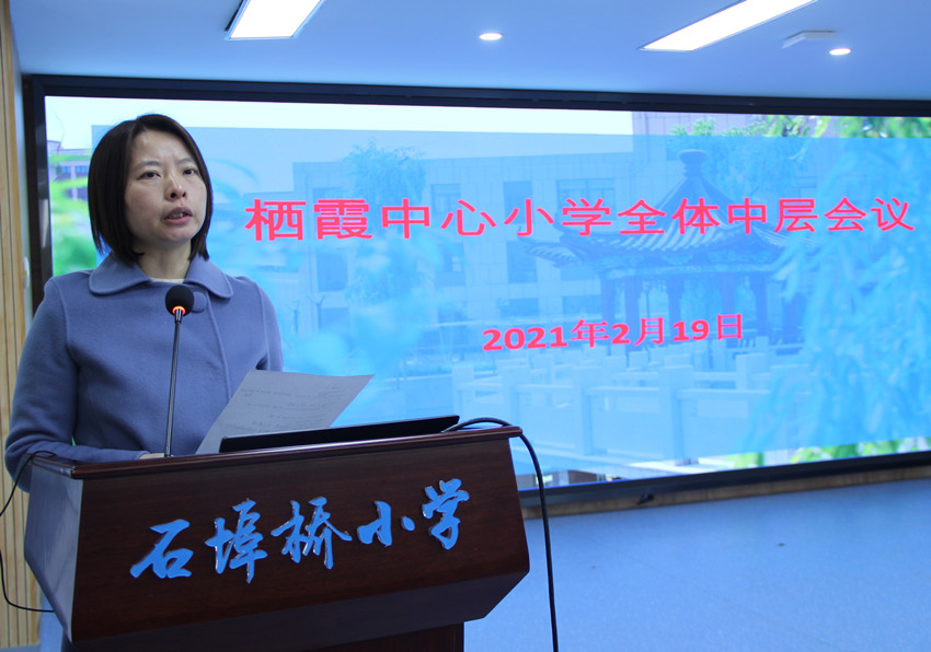 2021年2月19日上午,栖霞中心小学全体校级领导、中层管理人员在石埠桥小学阶梯教室,参加了开学工作会议。