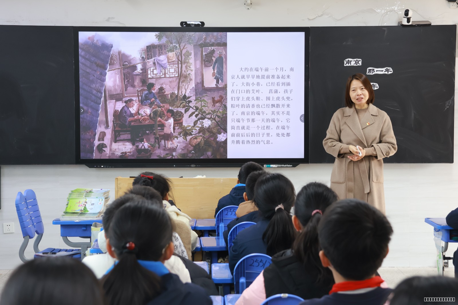 “大家看肖老师手里的绘本,南京那一年,大家猜一猜是哪一年?”课堂伊始,肖燕翻开绘本,用温暖的语调讲述着战前南京的民俗风情。随着书页翻动,画面色调从明快转为沉郁,她结合历史图片,将绘本中端午节的炊烟中断与南京大屠杀的史实相衔接,用30万遇难同胞的沉重数据,让学生理解画面背后的苦难。