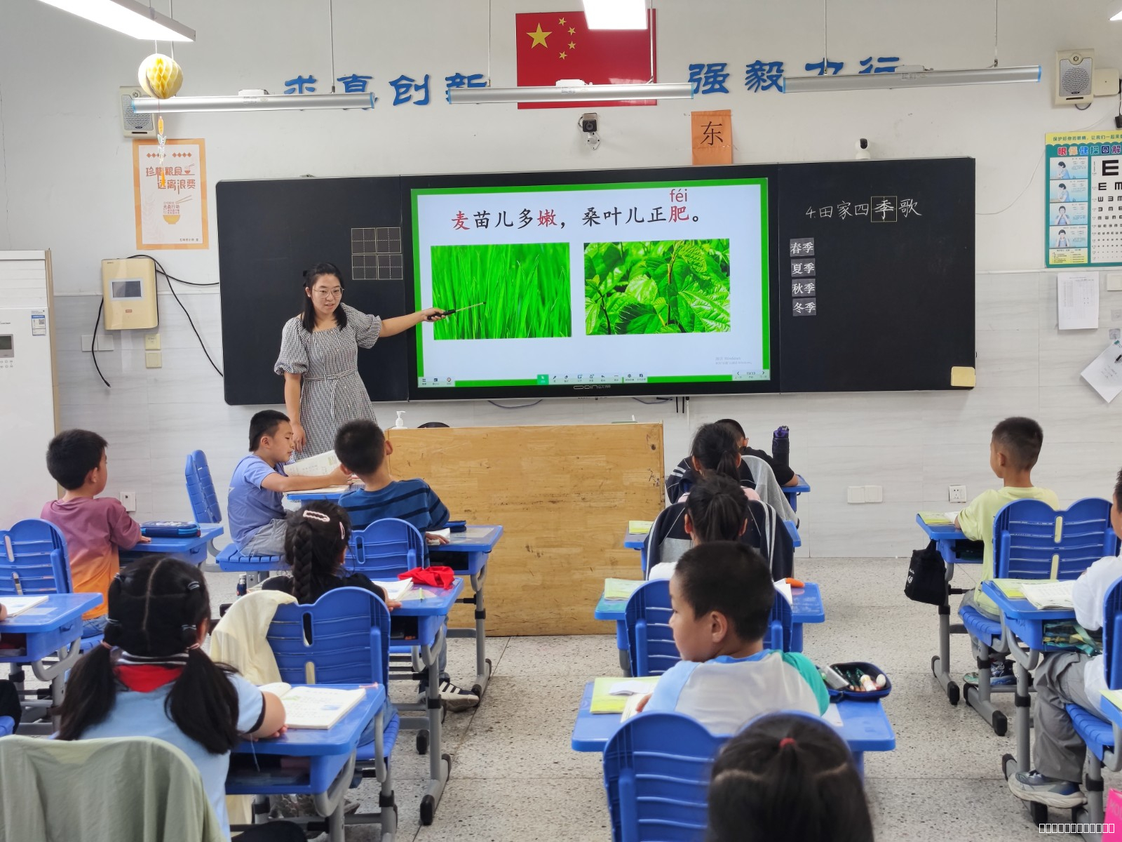 本次活动由王彦力老师执教《田家四季歌》。王老师整堂课思路清晰、教态自然,将识字教学与生活场景巧妙融合,让孩子们在趣味中掌握知识。教学中,王老师创新采用多元识字方法:借助课文插图引导孩子联想四季画面,从日常生活细节里挖掘识字契机,更通过古文字演变讲解,让汉字背后的文化故事触手可及。生动的情景设计牢牢抓住学生注意力,课堂上孩子们积极举手、主动互动,学习氛围格外浓厚。