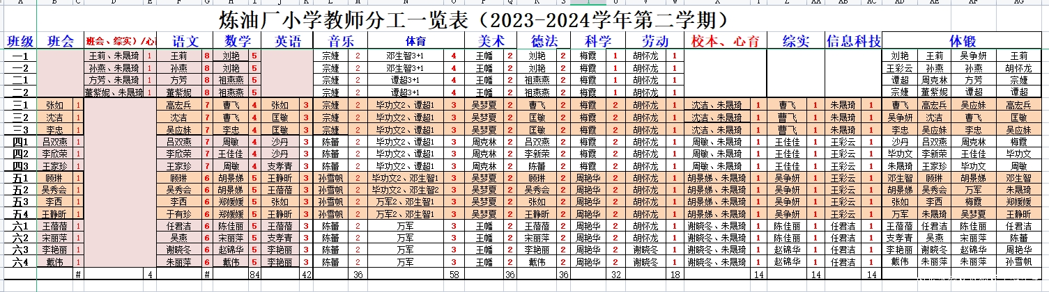 炼油厂小学教学分工表(2023-2024第二学期).xls