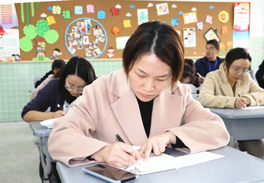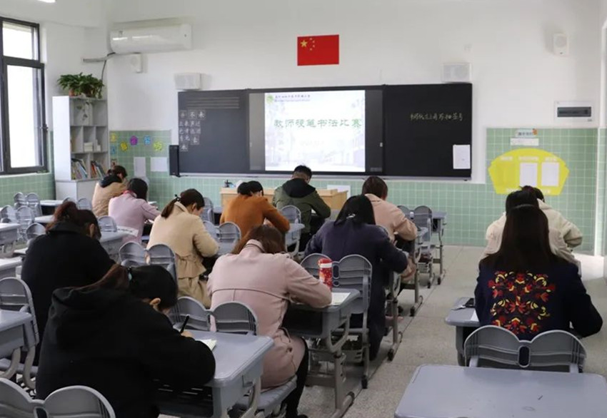 书写结束,由担任评委的五位老师一一为每份书法作品评分。评委们充分肯定了教师们书写认真,作品行款美观、整洁大方。此次活动评出了一等奖、二等奖和参与奖若干,这不仅调动了教师们书写汉字的积极性,也激励老师们积极为学生营造良好的书法教育氛围。此次活动得到老师们的一致认可,赛出了欢乐,写出了青春。