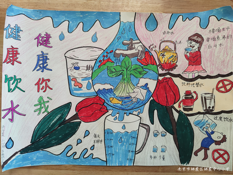 首先,华小各班开展了饮水安全知识的学习,全体学生了解饮用水标准相关知识,提高学生饮用水卫生安全意识。然后,各班学生积极开展制作了“健康饮水、健康你我”相关绘画作品。