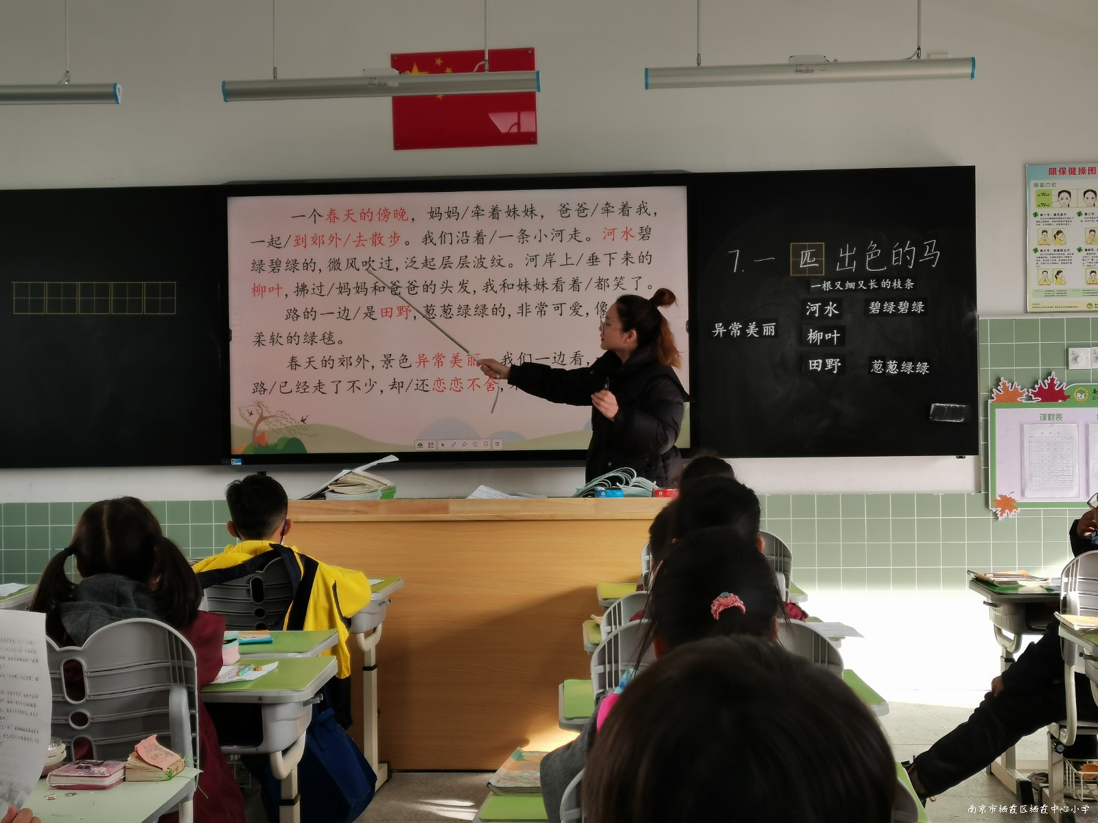11月29日,刘露老师接到了参赛课题《一匹出色的马》。11月30日下午,工作室的成员进行了磨课。刘露老师在课堂上让学生充分地朗读,并引导学生思考,让学生在朗读与思考中自己得出问题的答案。刘老师具有童趣的语言也调动着学生参与课堂的积极性,并巧妙地借助检查学习任务的完成情况来调整学生的听课状态。接着刘老师阐述了她备课时的思路以及在第一次磨课后的改进。工作室成员认为在课题出示环节可以更加简洁和高效,“匹”可以用量词填空的方式进行导入,字词的学习还要采用多种办法,例如写绿色,课文中用了好几个,我们可以拓展“像翡翠那样的绿色叫什么绿,像小草那样的绿色叫什么绿”。课堂过渡语还要与课文内容相结合,先看小河,然后看岸边柳树,最后看田野。教师的评价语言最好也要跟课文内容相关。教学的最后环节最好与第二课时有个衔接,引起学生的思考,一匹出色的马仅仅是指“一根又细又长的枝条”?学生很聪明,知道“出色的马”就是妹妹,但是为什么呢?就留着第二节课探讨了。