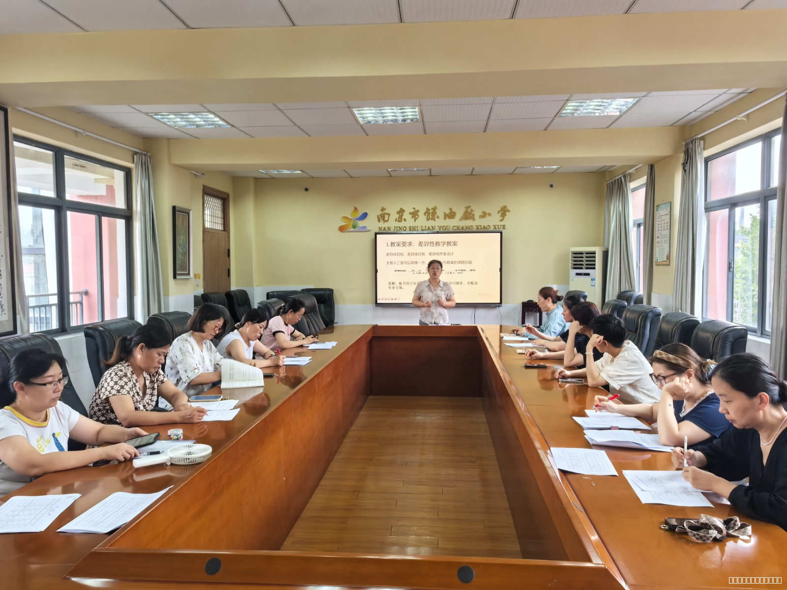 为了落实南京市新型优质小班制教学,学校从“差异化”教学这个方面进行尝试,吴校带领大家一起学习了文件的相关内容,重点解读了差异化教案的体现内容:从教学目标的差异化到教学任务的差异化,再到作业设计的差异化。并让老师们思考学生评价的差异化的具体操作。