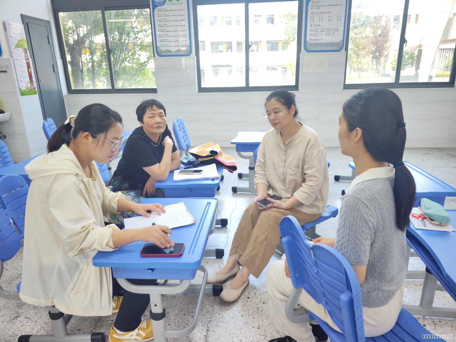 会后,各组以年段为备课组开展了集体备课活动,研讨开学第一课的教学设计和日常作业设计。