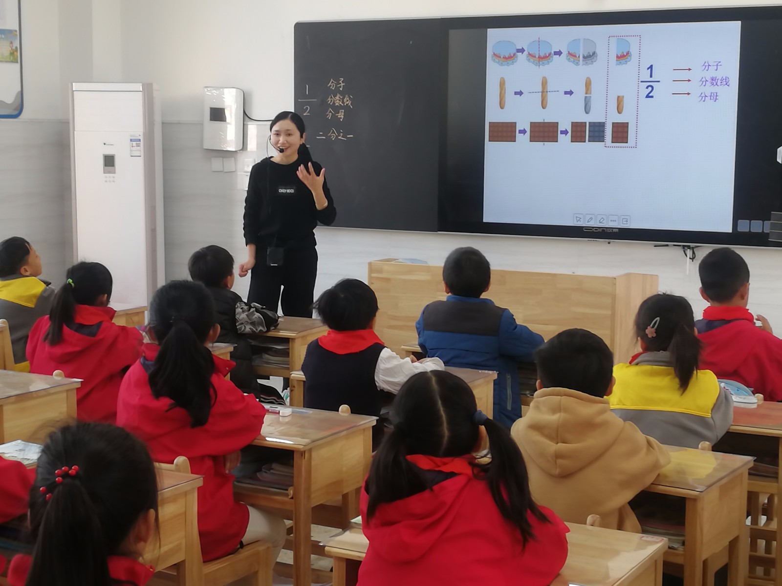 在今天的课例展示中,肖老师首先从情景图出发,让学生在分一分的过程中建立“平均分”“等分”的概念,再通过对大小不同的“蛋糕”“面包”“巧克力”进行“分一分”“想一想”,当学生对很小的蛋糕想象着平均分成20份,得到二十分之一时,学生对分数意义的理解更加的抽象和深刻。在学生对概念有了比较深刻的认识后,教师又引导学生在具体的生活情境中去应用概念,体会分数的抽象性和概括性。在课的末尾,教师拓展了几分之一大小的比较,学生在前面丰富的感知和运用的基础上,自然也就很好地理解了几分之一的大小关系。
